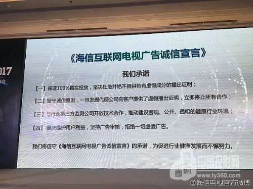 同時在會上,聚好看率先發(fā)布了《海信互聯(lián)網(wǎng)電視廣告誠信宣言》,以誠信自律的行動為行業(yè)健康發(fā)展做出示范,為促進(jìn)行業(yè)健康發(fā)展而不懈努力。