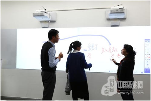 而在教育投影機體驗環節中,愛普生“雙屏幕拼接大畫面”投影所演示的“SMART Notebook”軟件,不僅帶來清晰的大屏投影和良好的書寫體驗,更充分展現了互動教育投影機的生動趣味性。配合安裝“iProjection”軟件,教師將屏幕上的作業發送至學生手機上,學生一邊答題大屏一邊播放,教師時時批閱,實時分享與交互。
