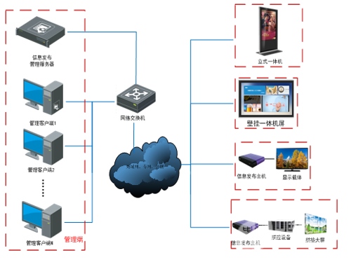 前端的顯示設(shè)備可以為液晶拼接屏、液晶監(jiān)視器、信息發(fā)布屏、LED顯示屏或信息發(fā)布一體機(jī),用戶可以根據(jù)自身需要自主選擇。