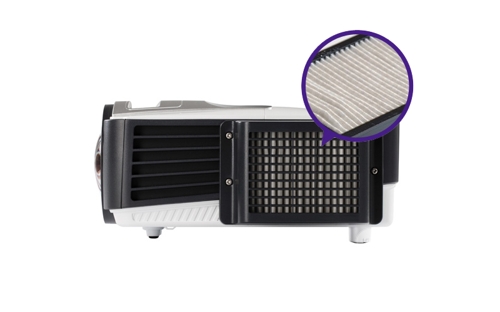 散熱和防塵一直是投影機(jī)設(shè)計(jì)中不可調(diào)和的一對矛盾,盡管防塵濾網(wǎng)不會把空隙堵死,但無疑減少了散熱孔面積。明基DX807ST短焦投影機(jī)采用優(yōu)良的GEN 1.5山型褶皺防塵濾網(wǎng)設(shè)計(jì),在保證散熱風(fēng)口面積的情況下,大大提升了空氣與濾網(wǎng)的接觸面積,在保留了散熱能力的前提下將防塵性能最大化,保證了明基投影機(jī)內(nèi)部元器件的正常運(yùn)行。