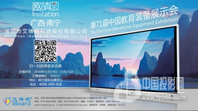 由中國教育裝備行業協會主辦,廣西壯族自治區教育廳和南寧市人民政府承辦的第71屆中國教育裝備展示會將于2016年11月19-21日在廣西南寧市國際會展中心召開。屆時,艾博德股份將在D展廳D2017展位打造一個以“智慧教育”為核心的信息化教學場景,向廣大嘉賓朋友展示艾博德最新的產品及方案。