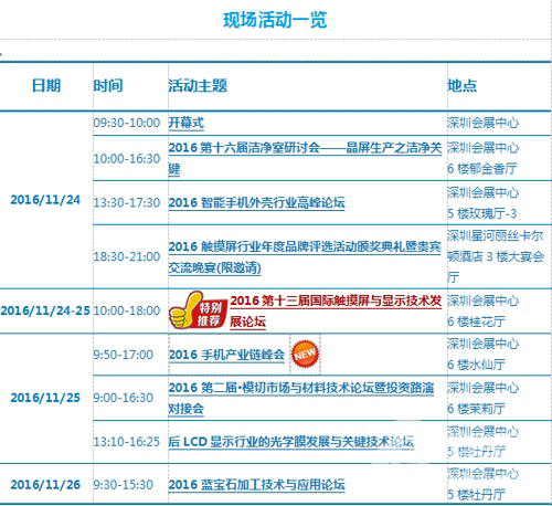 作為2016 深圳國全觸與顯示展的同期活動,2016第十三屆深圳國際觸摸屏與顯示技術發展論壇、2016手機產業鏈峰會、2016藍寶石加工技術與應用論壇、2016第二屆•模切市場與材料技術論壇暨投資路演對接會、后LCD顯示行業的光學膜發展與關鍵技術論壇將于2016年11月24日~26日在深圳會展中心隆重舉行。