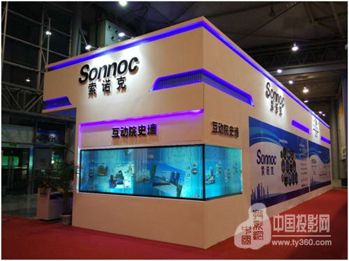 該展項以時間軸視頻圖片瀏覽軟件為主體,采用3臺7000流明的索諾克Sonnoc液晶投影機SNP-FU71C作為顯示媒介,配合半透明鋼化玻璃觸控投影幕(做成“L”造型),組成便捷的觸控瀏覽解決方案,可實現多人同時操作瀏覽,互動性極強,5760*1080 超高分辨率顯示視覺效果極佳。