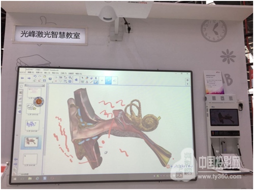 而在展會現場所展示的激光智慧教室解決方案中,所采用到的激光教育投影機,則是光峰今年新推出的3LCD激光教育投影機短焦系列AL-LW210ST,亮度高達到3300流明,配合90吋電子白板,組成便捷的數字化教學互動解決方案,輕松實現授課電腦與顯示屏的互動,避免老師遮擋學生視線,避免顯示屏對老師長時間近距離的健康傷害。