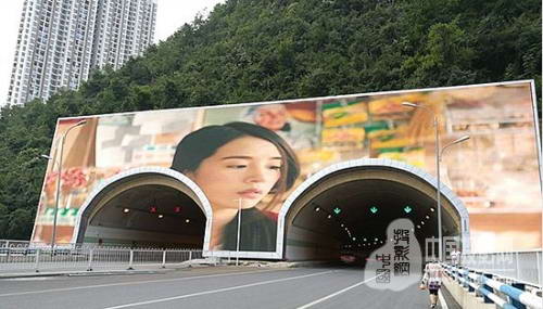 全中國乃至亞洲都獨一無二的LED顯示屏隧道,即位于貴州省貴陽市南明區的花果園隧道。花果園項目是宏立城集團應黨委、政府號召,啟動了總投資300億元、總建筑面積560萬m2的花果園彭家灣改造項目。這個隧道位于花果園中,隧道入口處建有一塊巨大的LED顯示屏,據悉,這塊顯示屏總面積達475平方米,由深圳市德彩光電有限公司承制。整塊屏幕呈M形,屏體與隧道和山體完美的融合在一起。