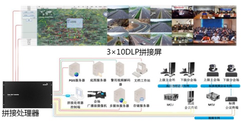1組DLP拼接墻,滿足轄區(qū)視頻監(jiān)控信號,專用服務器視頻等信號上墻顯示需求。