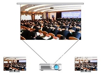 通過1臺投影儀和2臺大尺寸電視機來滿足視頻會議,多媒體信號顯示需求。