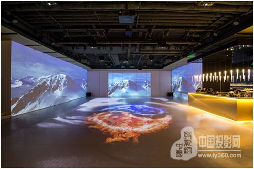 3臺(tái)松下激光工程投影機(jī)PT-FRZ570C與1臺(tái)松下激光工程投影機(jī)PT-FRZ68C打造墻面投影,擁有5400流明的亮度,它采用SOLID SHINE激光光源單芯片技術(shù)可長(zhǎng)久保持精美的畫質(zhì)和高清晰的投影圖像,很適合在大屏投影及環(huán)境光線較亮的場(chǎng)所的應(yīng)用。現(xiàn)場(chǎng)可播放流暢清晰的影片,供用戶休閑娛樂時(shí)觀看,也可播放品牌主題的宣傳片,打造高端大氣的品牌模塊。