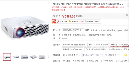 ▲飛利浦4835微型投影京東截圖
