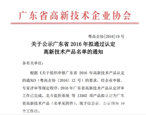 廣東省高新技術企業協會發布的擬認定產品名單通知