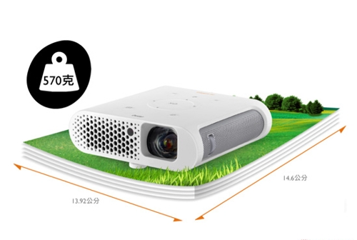 明基GS1 正面就可看出圓弧元素的應用,包括機身正面的散熱孔以及機身兩側;至于投影鏡頭部分則為手動對焦的定焦鏡頭設計,僅需 1m 距離就能投影 60 寸畫面,相信對于野外露營的用家而言,相當足夠。此外,GS1 具備最高 300 流明輸出亮度,LED燈泡壽命長達2萬小時,相等于可觀賞1萬部電影,而投影晶片則具備HD高解析畫質。