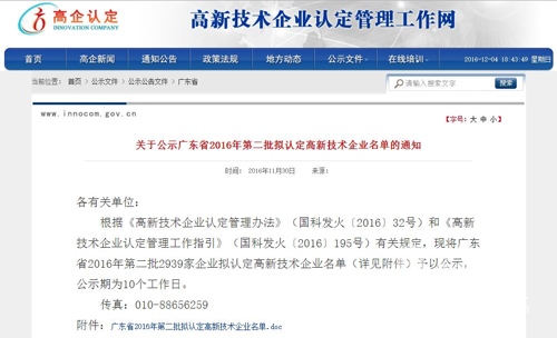 高新技術(shù)企業(yè)名單通知
