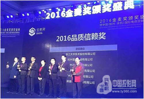 2016年12月14日,被稱為“電商奧斯卡”的金麥獎頒獎盛典在杭州開元名都酒店隆重舉行,大華股份憑借世界級的產品品質、貼心的客戶服務和極佳的用戶體驗,榮獲2016年度國際電商界奧斯卡金麥獎“品質信賴獎”,并位列“品質信賴獎”榜首。