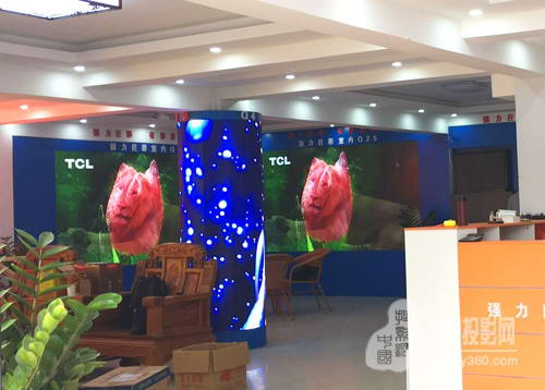 走進浩彩旗艦店,迎面就是一面柱形屏繽紛閃耀,讓整間展廳都熠熠生輝。