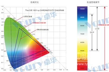 ④ 色溫可調范圍達1000K~10000K,滿足各種顯示應用領域對色溫的需求,尤其是演播室及綜藝節目等場所。