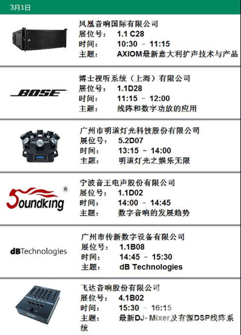 演示品牌:千周、艾迪、影響、韻沁、景龍科藝、千晟、杜氏、東雅、愛高、合和、中天信、藍(lán)爵、洛特思、邁聽、諾趣、德國美高、辰風(fēng)、聲浪、德士奧、特城、Seeburg Acoustic Line、蜚聲、唯優(yōu)聲學(xué)、萬亞、藝能聲、悅妙、醉美聲及聲揚(yáng)。