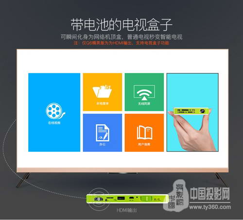 據小編所知目前大部份投影儀的HDMI接口都只支持輸入功能,不過也有一些投影儀支持輸出功能。例如酷樂視Q6精英版手機伴侶,這款機型的HMDI接口就是支持輸出功能的,如果你家的電視沒有買機頂盒,而你剛好又買了這款投影儀,那你就不用再去買機頂盒了,直接入手一條HDMI線就可以將這款投影儀用作機頂盒來看有線電視了。一機兩用,且小編打聽到這款酷樂視Q6精英版投影儀的價格不超過1000元,很實惠的,有!木!有!