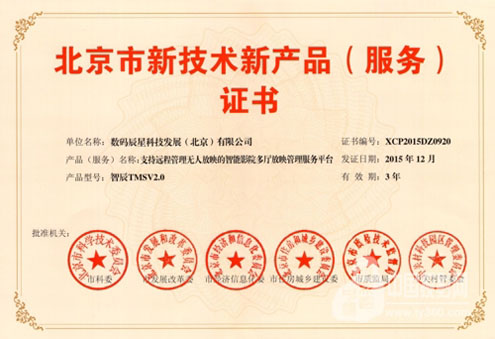 同時(shí),辰星科技申報(bào)的產(chǎn)品--支持遠(yuǎn)程管理無(wú)人放映的智能影院多廳放映管理服務(wù)平臺(tái)“獲評(píng)北京市新技術(shù)新產(chǎn)品資質(zhì)”。