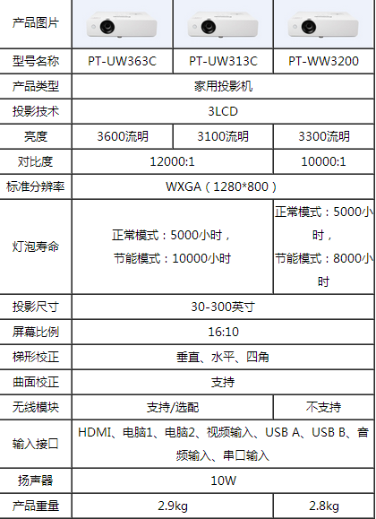 近日,全球投影機行業領導品牌——Panasonic面向家用投影機市場特別推出三款高清寬屏投影機PT-WW3200、PT-UW313C和PT-UW363C。三款家用機型以其親民的價格、優良的品質、出色的畫質讓消費者輕松獲得“客廳影院”帶來的視聽享受。
