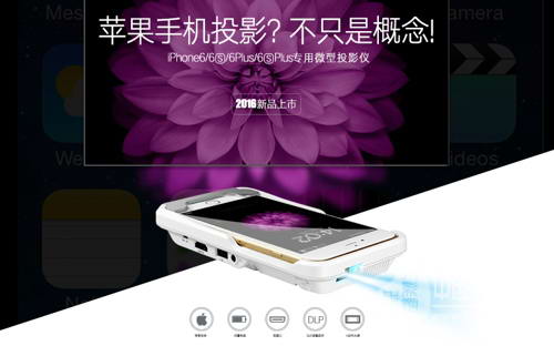 美高G6微型投影機(jī)專為蘋果iphone6系列手機(jī)設(shè)計(jì),創(chuàng)意性的采用了鑲嵌性設(shè)計(jì),分開時(shí)是投影機(jī)和手機(jī),鑲嵌到一起達(dá)到完美融合,現(xiàn)已成為世界最智能的微型投影機(jī)。