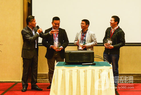 Vivitek(麗訊)中國區(qū)總經(jīng)理林中庸先生代表Vivitek(麗訊)為2015年表現(xiàn)最突出的3家代理商頒發(fā)年度最佳貢獻(xiàn)獎