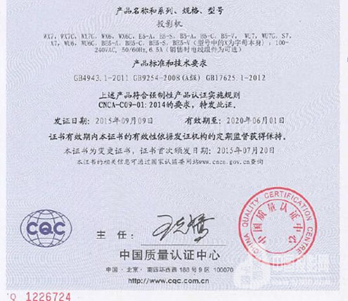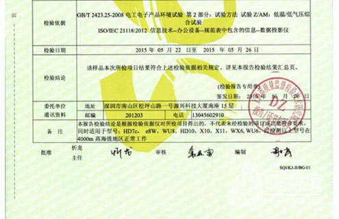 AVANZA投影機同時還獲得了國家權威認證機構頒發的海拔4000米無亮度衰減的證書: