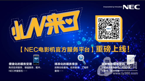 除了及時、快速響應消費者的需求外,NEC更隨時根據用戶需求提升和改進服務。如2015年,NEC結合當下移動互聯網發展趨勢及用戶的觸媒習慣,率先上線運營“NEC電影機官方服務平臺”,成為業內首家打造以功能性為主的電影機微信服務號運營廠商;用戶只要關注“NEC電影機官方服務平臺”微信公眾號就能指尖一鍵申請增值服務,自助查詢故障,了解最新資訊等。