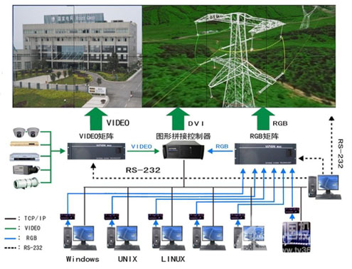 眾所周知,電力行業是關系到國計民生的基礎性行業。隨著電網建設的進一步完善,電力信息化、可視化的需求日益增強,為確保使電網運行于安全、可靠、經濟、優質、高效的最優運行狀態,電力公司調度控制中心大屏幕綜合顯示系統需要滿足日益集成化的實時圖像及數據采集、處理、監視與控制自動化系統等綜合性顯示要求。系統承擔著調度技術支持系統及不同安全分區的計算機、網絡、視頻等信號的集中顯示。