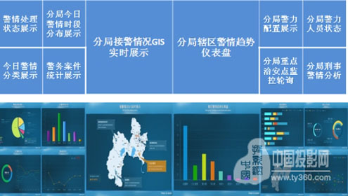 實時顯示分局當日警情數量,包含轄區內各個分局的實時警情數量和警情分布情況。實時顯示當日警力數量,包含分局和轄區各個派出所的實時警力數量。基于GIS地圖,以警情撒點的方式顯示轄區內警情的分布情況。重點顯示當日重點警情數據并突出標示。