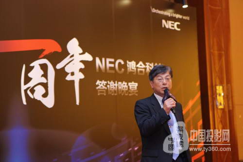 一年前的4月份,鴻合科技正式簽約成為NEC教育、工程投影機在中國區的總代理,雙方的業務發展開始邁入全新紀元。作為鴻合與NEC簽約的重要見證人,NEC(中國)有限公司董事長、總裁日下清文和鴻合科技董事長邢修青雙雙在晚宴中致辭。