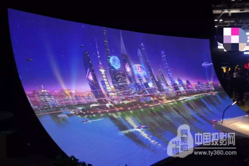 步入展臺,觀展者的目光立即被一組雙曲面投影方案所吸引。本展區采用4臺6000流明激光光源投影機VPL-F635HZ拼接融合打造,重現2016年即將對外開放的上海東方明珠巨型雙曲面投影項目中的一部分。由26臺索尼激光光源投影機合力完成的上海東方明珠雙曲面弧幕項目,整個弧面覆蓋高達567平米,上弧長77米,下弧長56.4米,如此巨大的投影畫面對投影機的色彩一致性、畫面穩定性、安裝調試便利性都提出了異常嚴苛的要求。隨著索尼激光光源投影機不斷進化,特別是以VPL-F635HZ為代表的第三代激光投影機的誕生,為地標性展館、藝術中心、主題公園等對投影畫面要求極高的用戶,提供了高附加值的有力選擇。