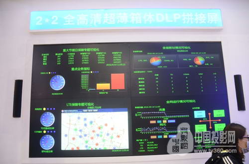 除了智能GIS可視化應用綜合顯示平臺外,GQY最新的顯示終端也是用戶關注的焦點,如現場另外展出的一組2*2 DLP全高清超薄箱體拼接屏。產品除了顯示效果一流外,最突出的特點就是采用超薄箱體以及前維護設計。要知道一直困擾傳統DLP拼接的不是顯示效果而是其產品體量,占用空間較大,維護不方便是DLP拼接的最大的痛,GQY這款DLP全高清超薄箱體拼接屏讓這些問題迎刃而解。
