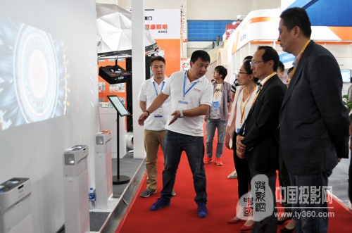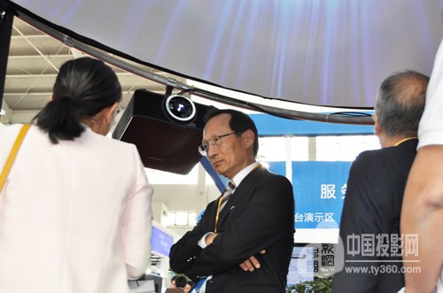 下午兩點,野中秀嗣先生一行到達現場。在理光投影機高層VC事業推進中心總經理大下慎一和副總經理劉軻的陪同下,參觀第70屆中國教育裝備展示會理光展臺。在本屆展會上,理光展示了旗下眾多高端投影機,現場更是呈現理光獨有的四大創意投影解決方案: 沉浸式Cave系統影院整體解決方案、球幕系統解決方案、三通道融合展示和幻影成像等。