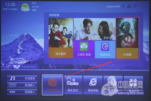 作為一款智能微投產品,內容也是用戶十分關注的一部分,影響著用戶體驗。窩窩頭H8搭載智能安卓系統,擁有海量視頻資源,最新最熱影視、綜藝節目隨心看。