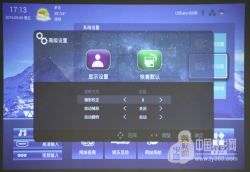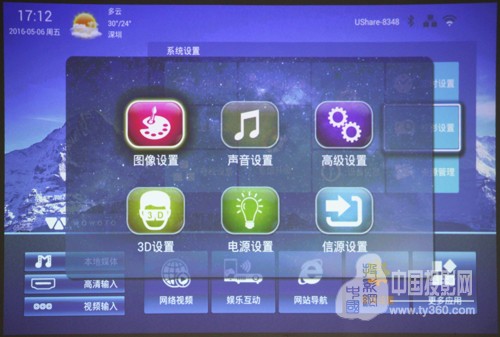 在使用時還可以對圖像、聲音、電源、信息源、3D顯示等進行設置。投影畫面支持16:9/16:10/4:3多種比例,因此在演示時可以根據內容對屏幕進行調整,以達到最佳比例。同時用戶在觀影時,也可以通過畫質調節,對整個觀影畫面進行調整,以適應不同的環境。