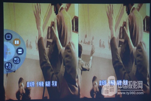 對于大家比較關心的電影播放效果,小窩也體驗了一下,不過由于當時主要關注2D轉3D的功能,所以沒拍什么照片,下面這兩張大家就湊合著看吧。但是從畫面中,我們不難看出,整個圖像還是比較清晰的,色彩還原度依舊很好,不失真,不偏色,雖然細節表現和對比度有所欠缺,但決不會影響正常觀看。在播放3D視頻時,沉浸感很強,可以媲美電影院3D電影的視覺效果。
