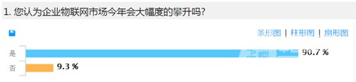 1. 九成的國內伙伴認為企業(yè)物聯網市場在今年會大幅度的攀升,但一成持有保留意見的伙伴仍對物聯網在國內發(fā)展存在的政府支持、資金、技術、維護等客觀問題存在觀望態(tài)度。