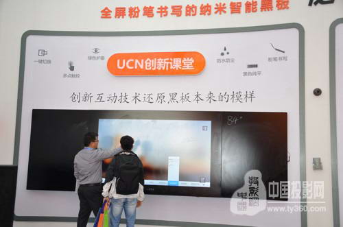 在第70屆中國教育裝備展上,作為泛普公司的核心產品---納米觸控黑板,一經推出就在智慧教育領域掀起了熱潮。不僅因為其黑色純平的設計,更符合老師和學生對黑板的認識,更重要的是它與傳統紅外電子白板相區隔,高度結合了普通黑板、投影儀、電視電腦、電子白板、音響等設備功能,既能當普通黑板一樣用粉筆直接書寫,也可一鍵切換成超大平板電腦。本次展會,應用了泛普最新一代納米觸控技術的納米觸控黑板將上演全球首秀。