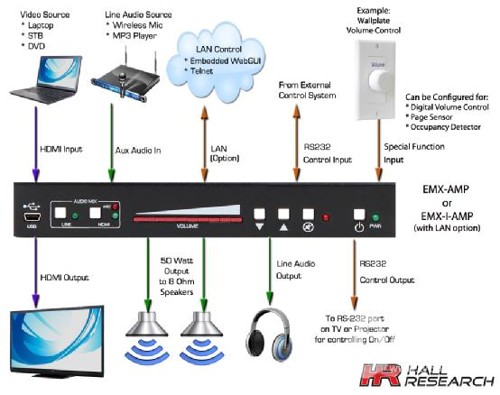 EMX-I-AMP 50W/路HDMI高清音頻功率放大器(具備線路混音功能)