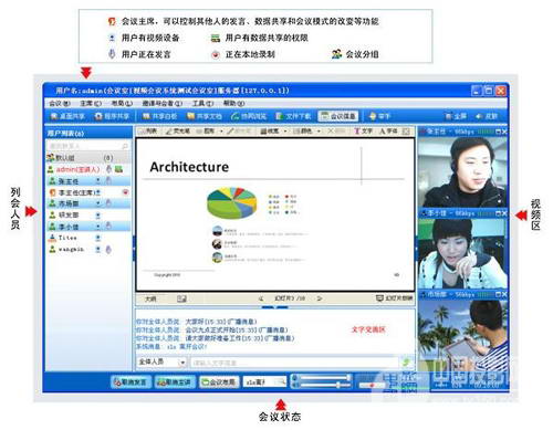 借助視頻會議,用戶無需再遠程跋涉,忍受舟車勞頓之苦,一臺上網本,一根網線,人們便可穿越時間、空間的阻隔,足不出戶即實時再現會議場景,構建與真實環境無異的會議模式。視頻會議靈活多變的數據協作功能,使遠程互動性大大增強,溝通效率成倍飆升。網絡視頻通訊領導品牌—視維視頻會議系統具備良好的網絡自適應能力和兼容性,適用于各種網絡環境,網絡丟包率極低,支持各類平臺的系統,兼容其它視頻會議系統;視維視頻會議擁有超級語音引擎集成–采用GIPS寬帶語音,同步全球最優音頻技術,音質完美,回聲消除效果理想;帶寬占用低;高清品質優化視頻–H.264/AVC的高效視頻編碼算法具有業界領先的視頻品質;高級視頻預處理和后處理算法大幅提高了視頻品質,降低了CPU占用率;同時,系統附帶豐富的數據協作功能,電子白板、屏幕共享、文件共享、協同瀏覽、在線投票、會議錄制等功能,極大的擴展了會議的可用性。