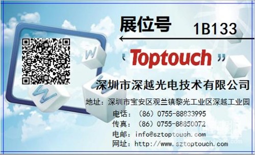 屆時,在2016深圳國際全觸與顯示展展會現場,深圳市深越光電技術有限公司將展出觸摸更快速,外觀更美感,成本更有優勢的新產品。深越光電的展位號位于上深圳會展中心1號館1B133號展位,歡迎行業同仁前來參觀咨詢。