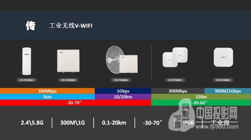 大華V-WIFI家族已全面覆蓋室外3-20km遠距離,同時提供300Mbps-1Gbps無線超大帶寬,涵蓋以DH-880/881系列為代表的3km,DH-PFM886系列為代表的10-20km無線傳輸設備。