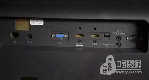 從機器的側邊我們可以看到一個內凹的糟。內面藏著所有的連接端子,HDMIx2、USB、VGA、12V連動線還有RS232。