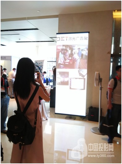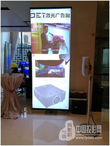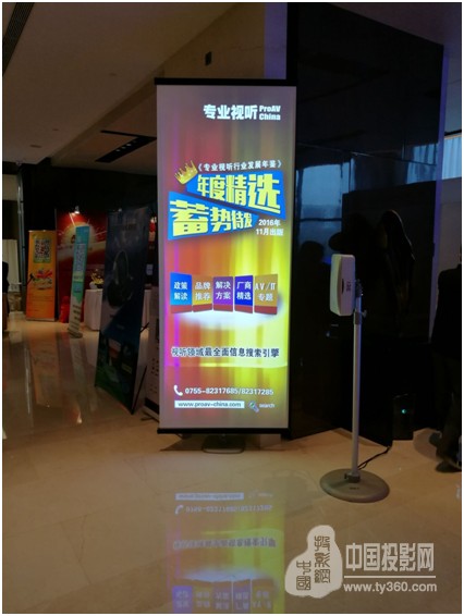 DET德浩還帶來了超寬屏超短焦激光商務投影機的解決方案——DET-V1視頻易拉寶移動廣告看板,采用1.12*2米的易拉寶與DET-V1的組合。DET-V1具有0.25超短焦鏡頭,分辨率為1920*720,亮度高達3200流明,并充分利用其支持側立投影的特性,經過簡單的制作,可達到一個屏播放多個畫面的效果。現場也可見,經由V1播放出來的畫面效果十分驚艷,吸引了不少停留駐足的參觀者。
