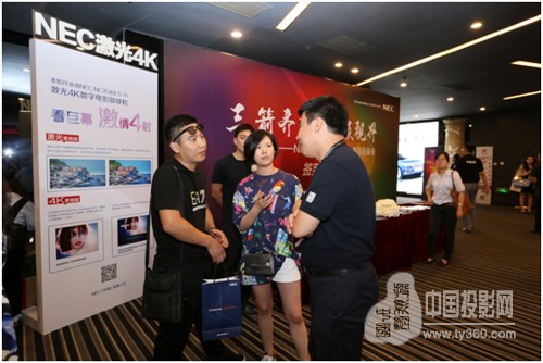會議部分結束后,NEC還設置了自由參觀及交流的環節。通過播放片花讓到場嘉賓在真實影院環境中體驗NC1201L和NC1000C的放映效果,更加直觀地感受NEC電影放映機帶來的視覺饕餮盛宴。不論是2D畫面還是3D畫面都十分細膩、清晰,而且噪音極低, 讓嘉賓們在驚喜中感受到了NEC領先的技術優勢。