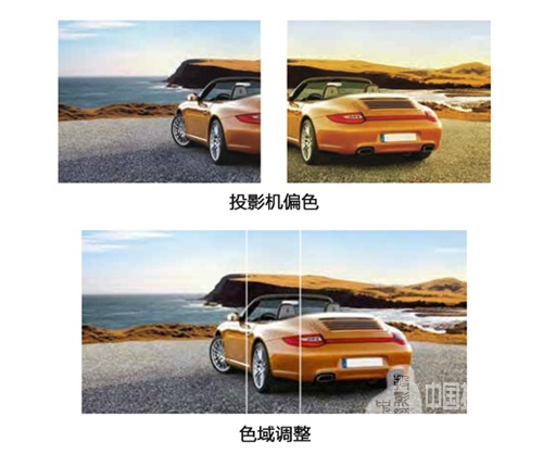 色差是投影機的一個頑疾,同一品牌同一批次的投影機也無法保證顏色完全一致。這種色差在單臺投影時并沒有太多影響,但在多臺投影機組成的融合系統(tǒng)中卻變成了災(zāi)難。
