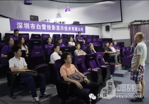 標哥為合作伙伴們介紹了球幕影院系統、3D影院系統、下轉式工程電動銀幕、二次升降銀幕的使用原理以和使用場所,以及競標和護標的投標標書寫法。