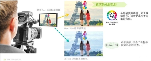 作為以“逼真的色彩”定位專業人群的投影機,Acer宏碁彩繪系列的高品質畫面呈現可謂奠定了其在多個領域內無可代替的“精·彩”地位。統一采用代表高清電視和電影制片廠要求的Rec. 709色彩標準,能夠完美輸出高清電視、藍光碟片以及大部分攝像機和照相機品質級別的優質畫面,成功實現投影機向影院色彩標準的完美跨越。同時,結合能夠消除色彩偏差的sRGB,更加充分保障了Acer宏碁彩繪系列投影機忠于本色的杰出魅力。