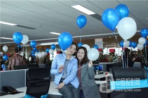 飄滿藍(lán)白氣球的辦公室,還有咱們的美女員工