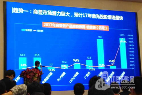 日前,在深圳舉辦的第八屆中國商用顯示系統(tǒng)高峰論壇上,國內(nèi)知名的數(shù)據(jù)研究機(jī)構(gòu)奧維云網(wǎng)分享到《中國商用顯示產(chǎn)業(yè)發(fā)展報(bào)告》,其給出的2016年激光投影市場(chǎng)銷額達(dá)到44億元,僅次于電子白板的市場(chǎng)體量。增速更是達(dá)到驚人的194.2%。而據(jù)其預(yù)測(cè),2017年激光投影市場(chǎng)將繼續(xù)保持高速增長(zhǎng)態(tài)勢(shì),得益于家用與商用領(lǐng)域的開拓性應(yīng)用,其規(guī)模將推高到162.3億元。